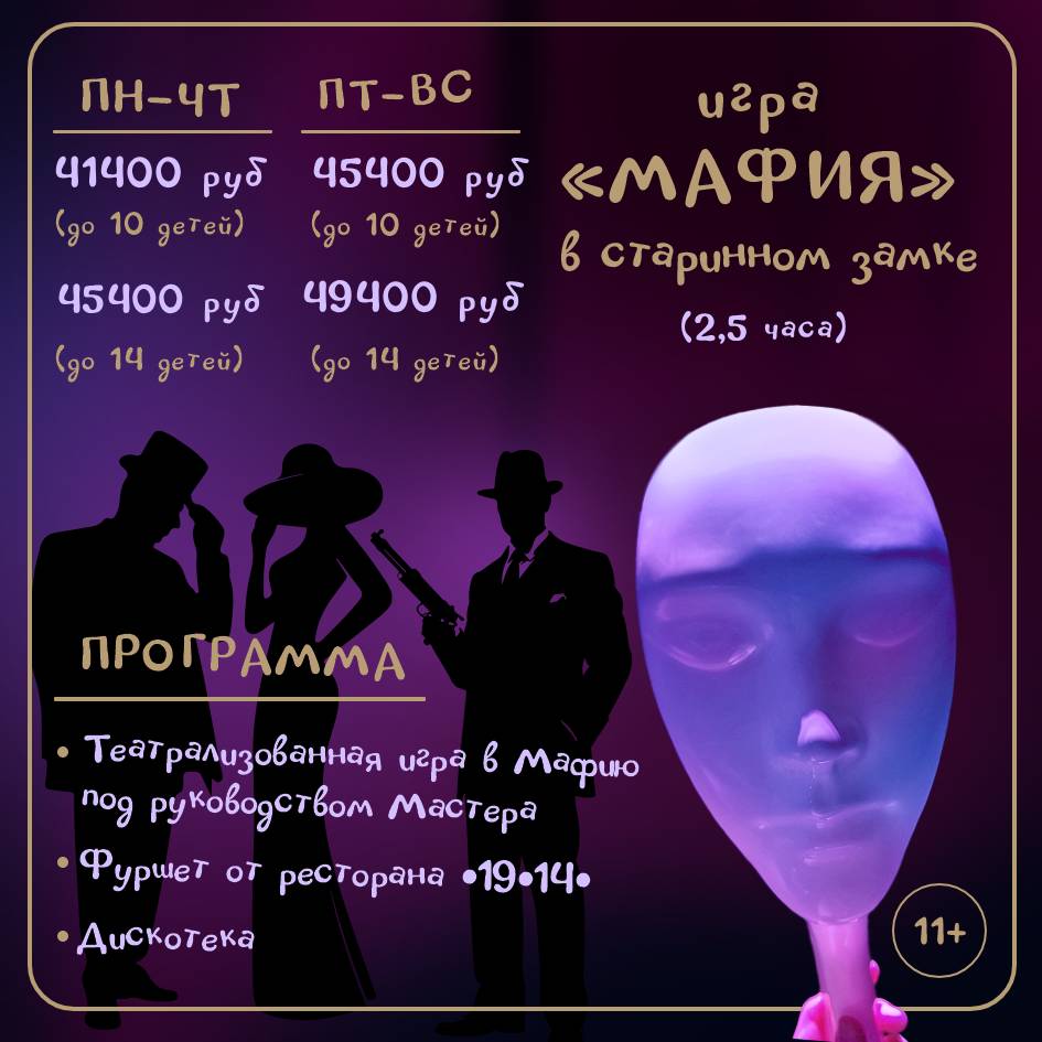 Обращаем ваше внимание, что минимальное количество гостей для игры в Мафию – 8 человек старше 10 лет.