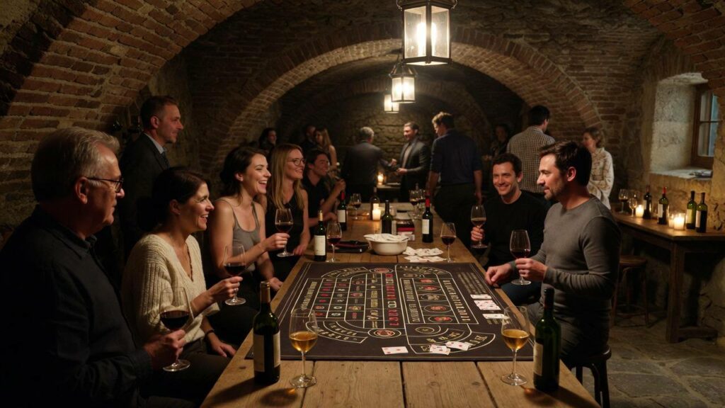 Винное казино — игра, во время которой участники соревнуются за звание главного винного знатока вечера. Вместо рулетки — бокалы, ставки только на интуицию, а главная валюта — знания.