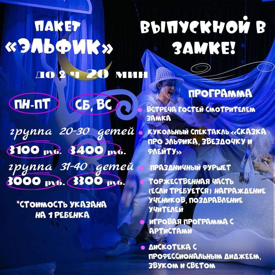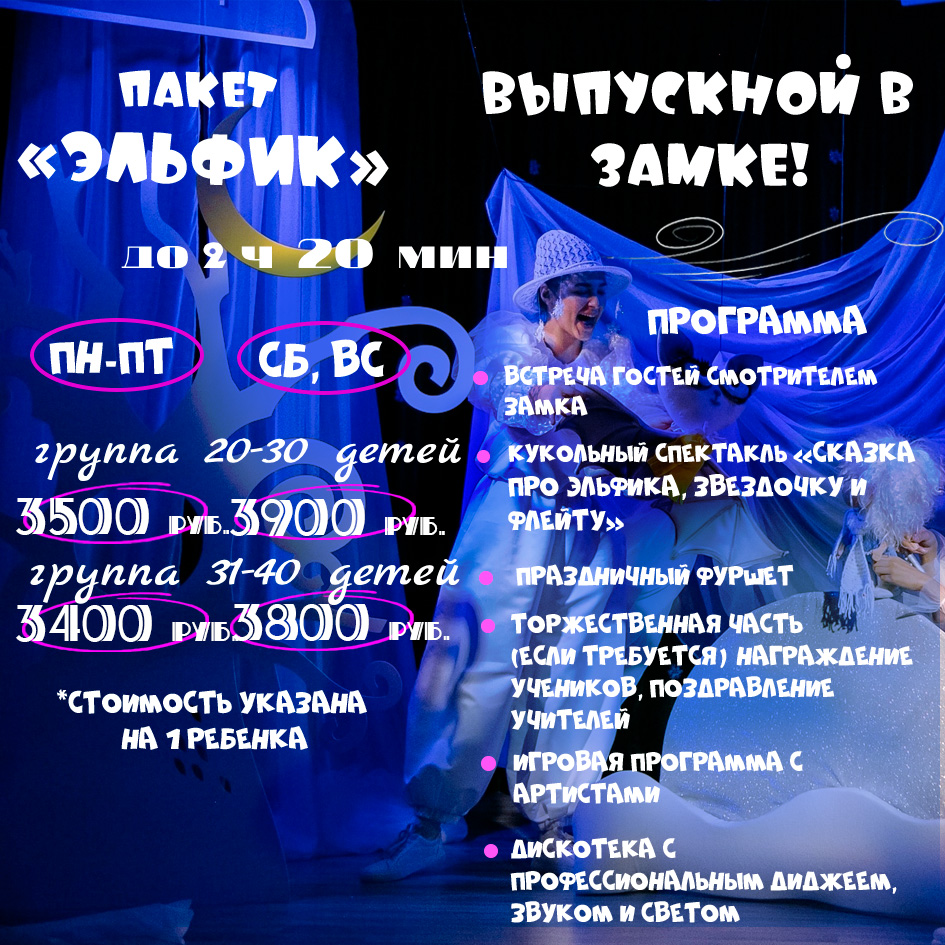 Спектакль «Сказка про Эльфика, Звездочку и флейту», это сказка о дружбе и верности своей мечте. Этот спектакль на выпускном празднике может стать отличным напутствием для малышей, вступающих в жизнь школьника.